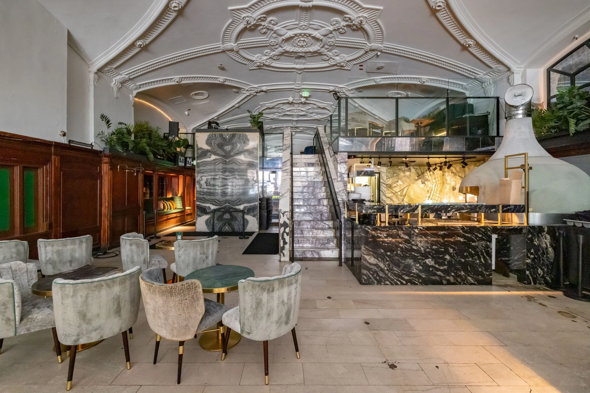This expansive 7,000 SF DTLA restaurant and club offers a versatile, multi-level environment for film, photo shoots, events, and brand activations. With dramatic 12'-20' ceilings and distinct functional zones, it provides a grand and adaptable setting for creative projects: